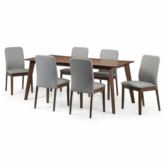 Finished in a bold walnut effect wrap and linen fabric, this dining set has a timeless feel that combines contemporary with traditional. Perfect for enjoying family dining, this set adds the wow factor to your kitchen or dining room and has comfortable padded seats.
