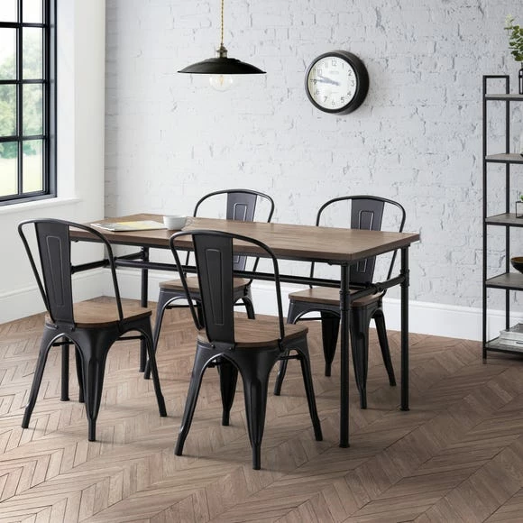An industrial feel with a statement, this Carnegie dining set is sure to make meal times more enjoyable and stylish by bringing a trendy and rustic vibe to your home. With elm wood and black pipework style metal legs, this dining set adds a different element to your dining set up that definitely won’t feel boring.