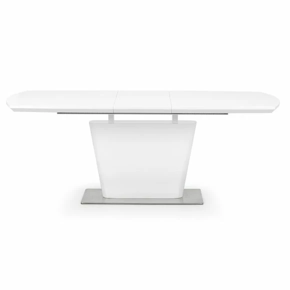 The Como extending dining table boasts a sleek, modern design finished in a crisp white high gloss with a sturdy chrome pedestal base. This spacious table features an easy to use butterfly extension system that stores within the table when not in use, comfortably seating up to 6 people. This striking dining table will be a lasting style statement in any dining room.