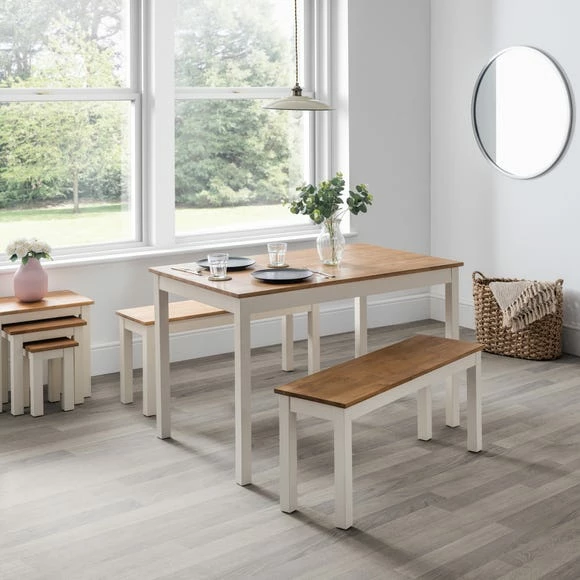 Hot Sale ๐ Julian Bowen Coxmoor Rectangular Dining Table with 2 Dining Benches Ivory with Oak ๐