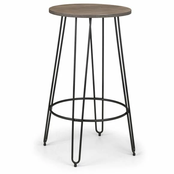 Crafted from solid elm wood with black powder coated steel legs, this bar set is perfect for adding that modern feel to your home. With hairpin legs these chairs a modern feel. This modern bar set is perfect for smaller homes and rooms as it is space saving and a perfect alternative to a large dining table.