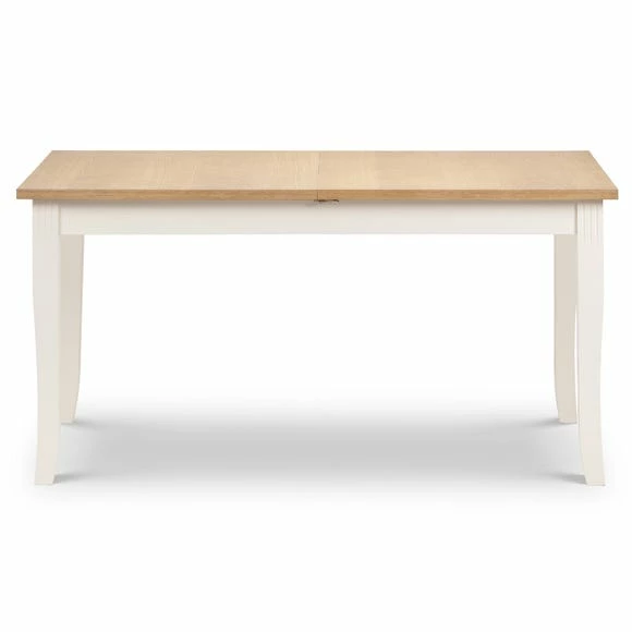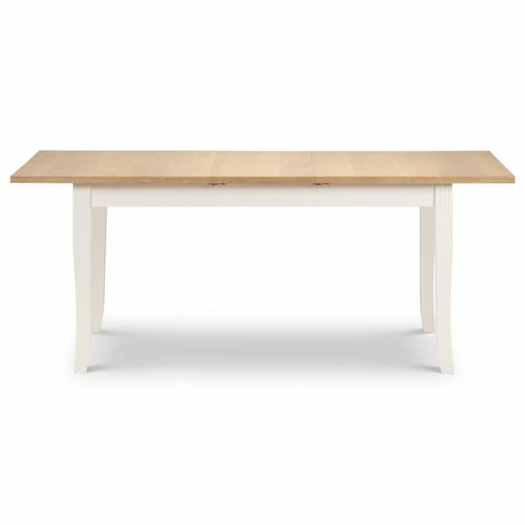 Crafted from solid rubberwood and a real oiled oak veneer 25mm top, this extending table is not only classic and modern but it is extremely durable. Perfect for any home, this table has an ivory lacquered finish. Other matching furniture is also available.