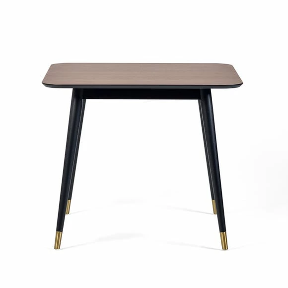 Dine in style, every night is a night at the trendiest restaurant with this Findlay dining table. Designed with a walnut effect top and striking black metal legs finished with brass tips, this stylish take on a midcentury inspired look is one that’s sure to last the test of time and fit in seamlessly to your existing décor.