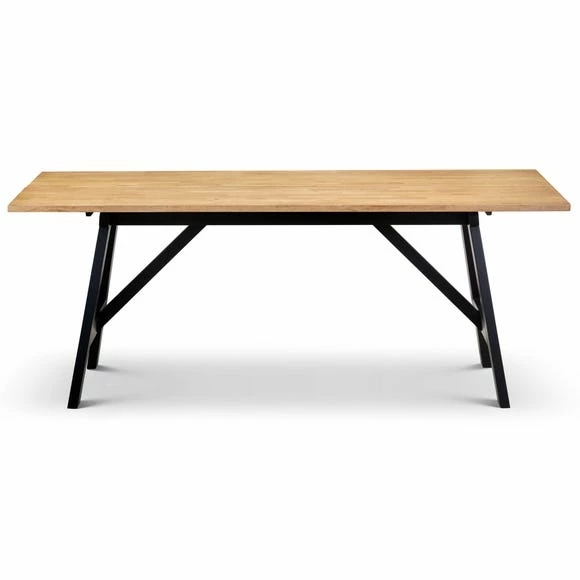 Boasting the perfect combination of contemporary and classic, this dining set is perfect for family dining. With trestle style legs, and a 25mm solid oak top, this table has a farmhouse feel. This set features 6 elegant cross back chairs.