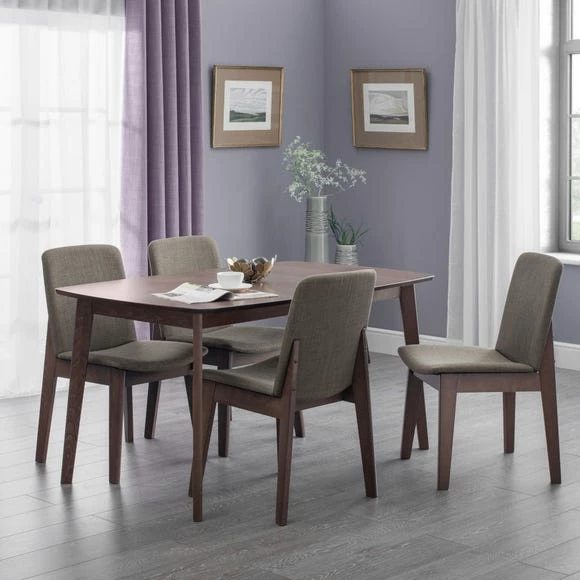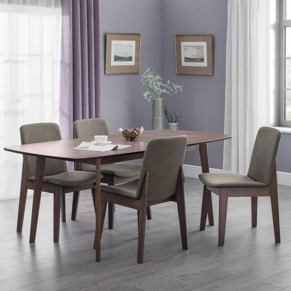 Accommodate dinner guests and host the best parties without the stress, spend less time worrying about making space thanks to this Kensington extendable dining set. The walnut effect table paired with the stylish dining chairs creates a look that exudes comfort, you’ll be obsessed with finding reasons to have guests over to admire your set up!