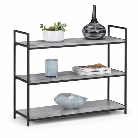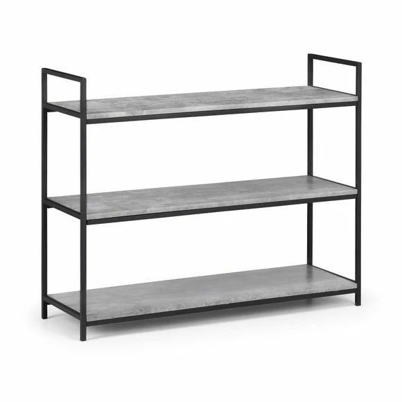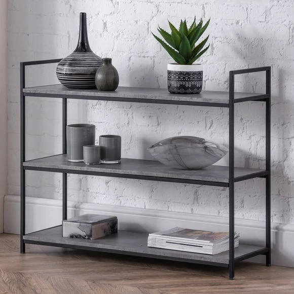 Offering a clean, industrial design, the Staten low bookcase features concrete effect shelves and a black painted steel frame. Complete with 3 wide shelves this sturdy, self-assembly bookcase offers plenty of useful storage space.