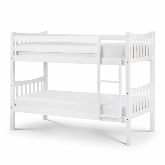 Beautifully finished in brilliant white lacquer, the Zodiac Bunk Bed features a subtle, attractive curve in the matching headboard and foot end. This solidly constructed bunk bed comes with a robust ladder and high side rails for your peace of mind.